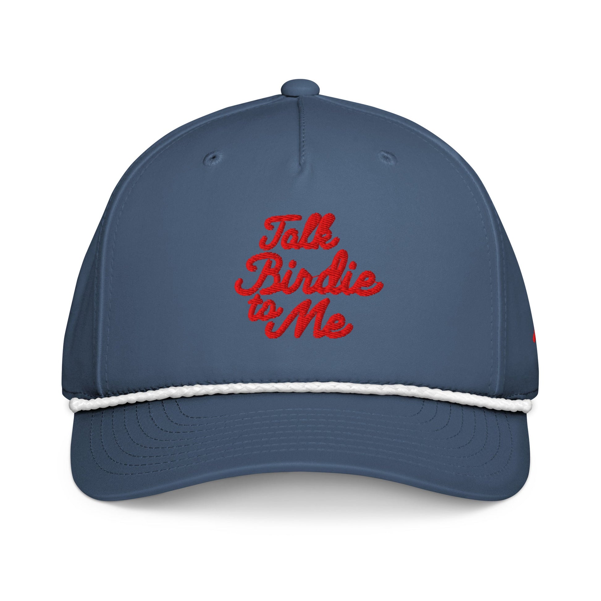 This retro-style golf rope hat features bold embroidery with “Talk Birdie to Me” on the front and “Just Fore Fun” on the side — perfect for those who love the game and a good pun. Whether you're teeing off or relaxing at the clubhouse, this unisex hat adds style, humor, and personality to your golf look.